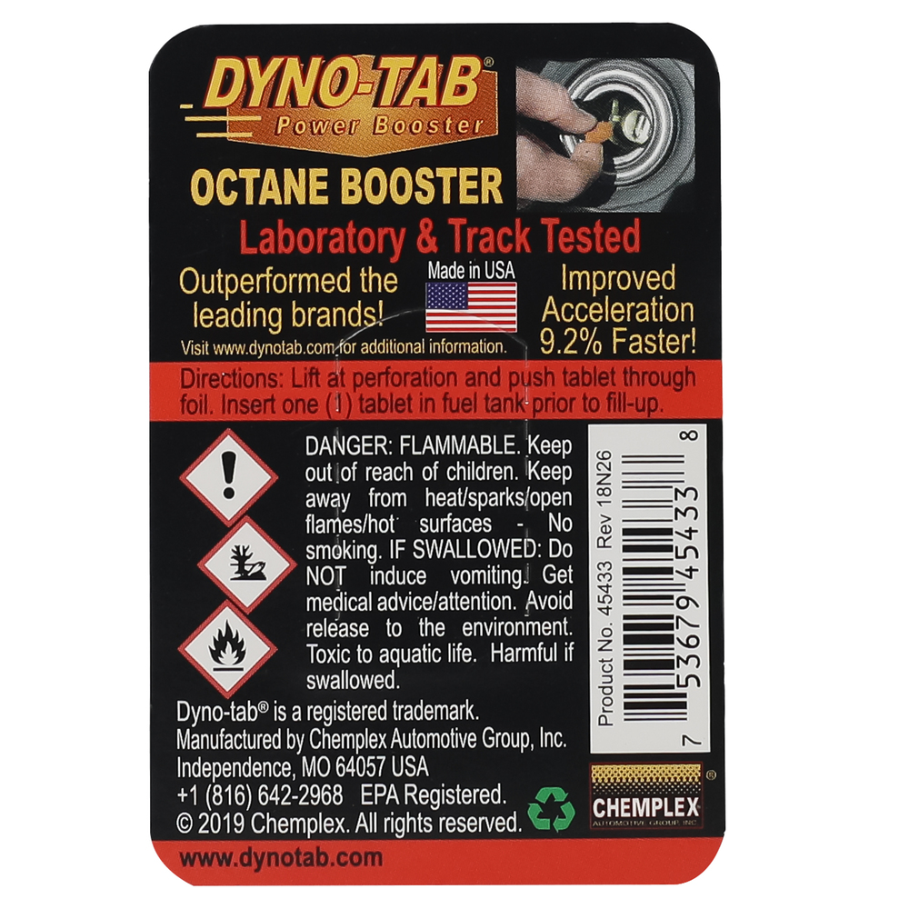 | Product Name | Dyno-tab® HP Octane Booster ONE – 45433 - for Gasoline Engines ONLY | 1-Tablet Card | 1 Tablet Treats 60 Liters |