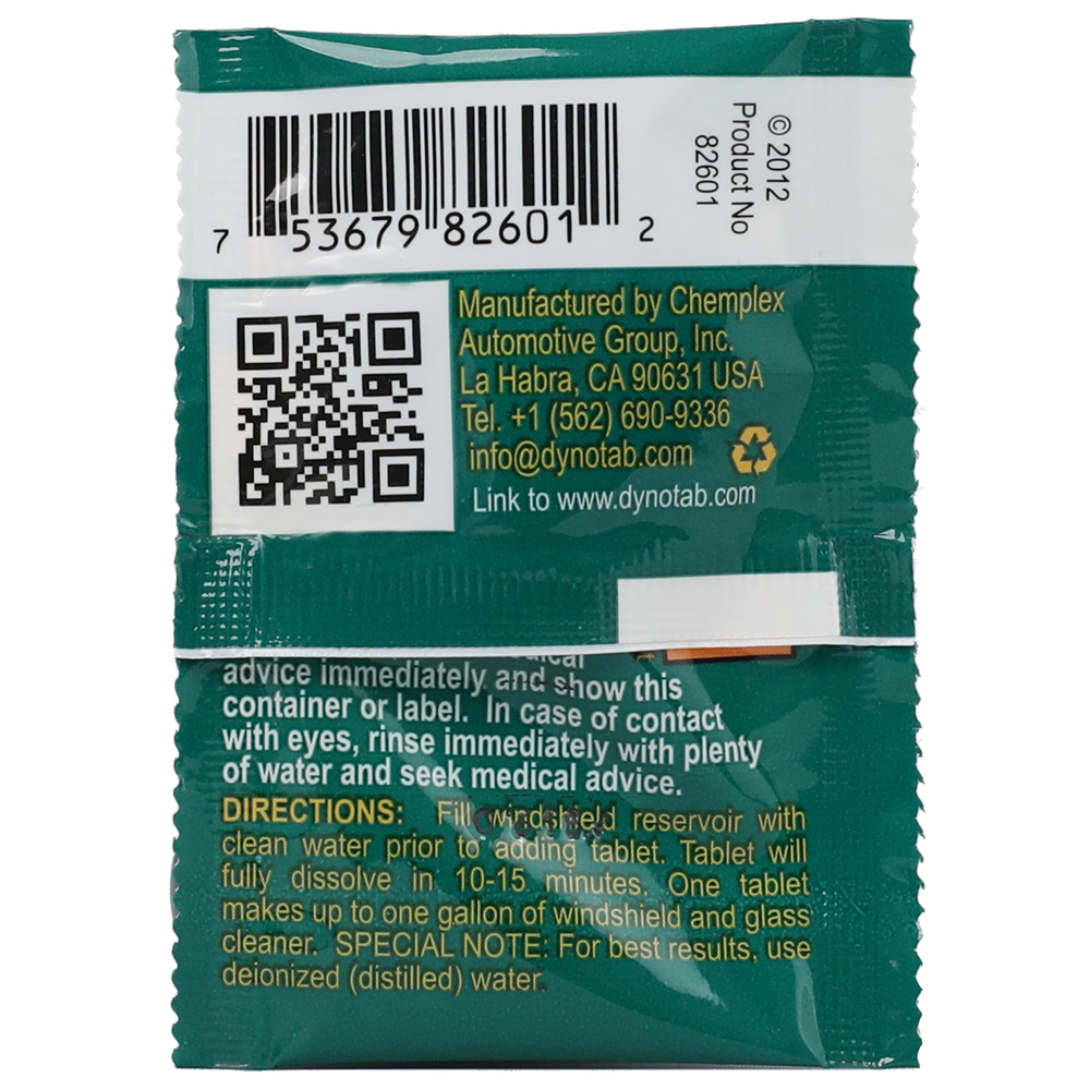 | Product Name | Dyno-tab® Windshield Cleaner 82641 | Contains 2 tablets, Each tablet makes 1 gallon (3.79 liters) |